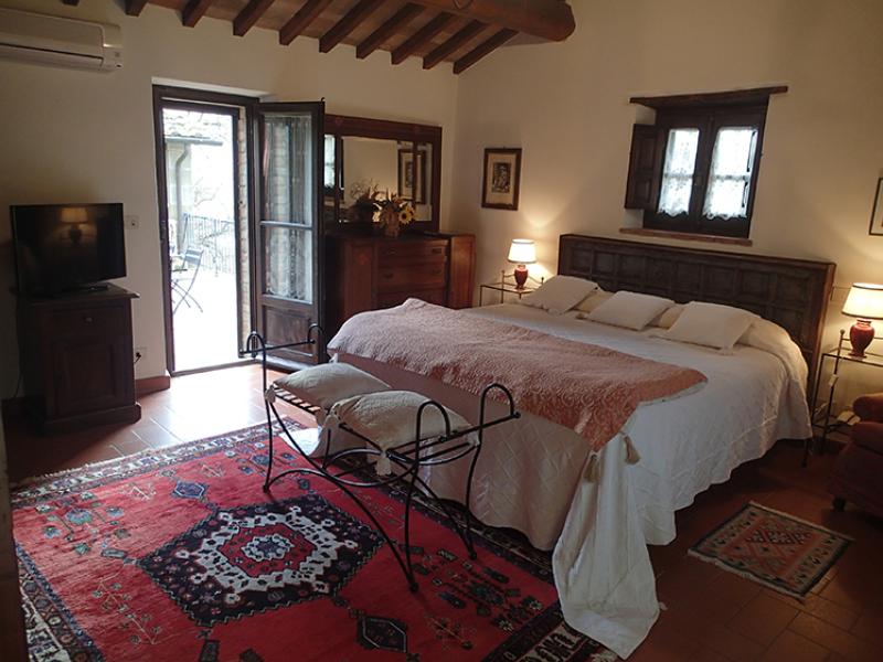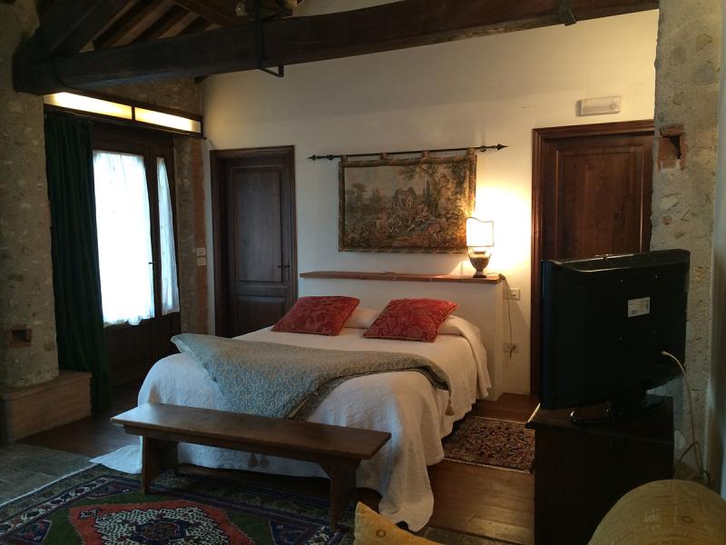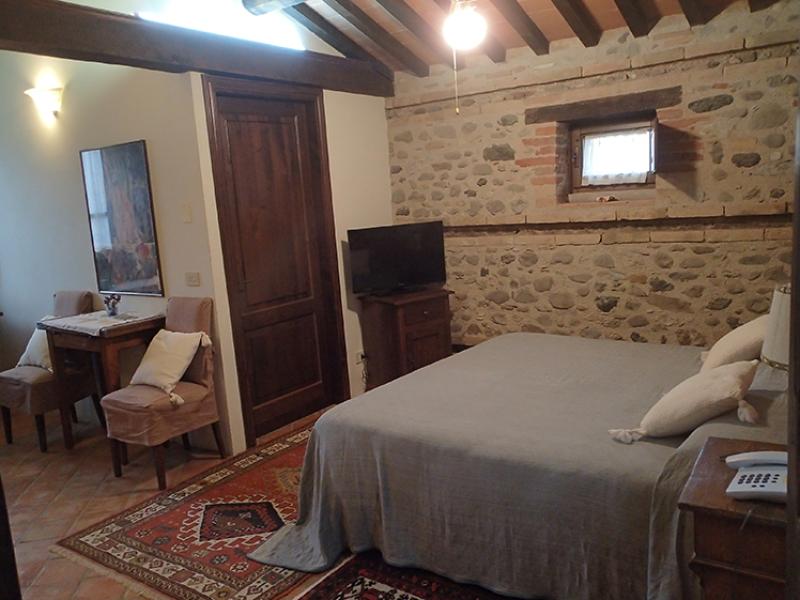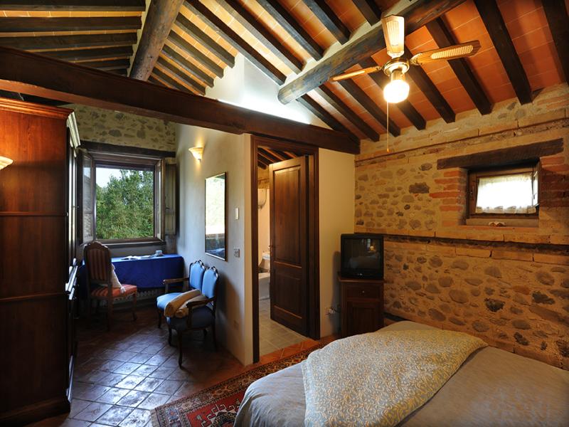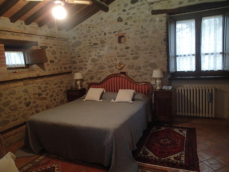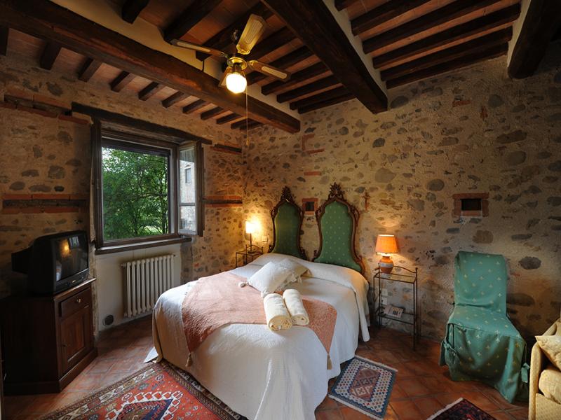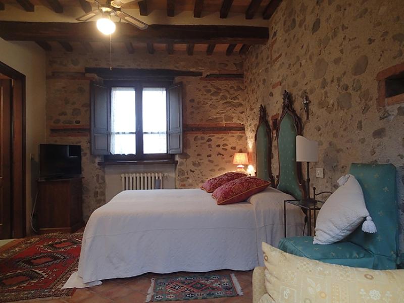 This was once a small church transformed over the years into a former squeegee where it was left to dry tobacco we created after a long and arduous restoration, two delightful suites; named Pieve and Fonte. On the ground floor we have the suite FONTE where there is a double bedroom with en suite shower room that can accommodate 2 or 3 people. From this floor, through a terracotta stairs leads to the upper floor where there is suite PIEVE a master bedroom with en suite bathroom with shower. The room has a closet in which there is a small kitchen with refrigerator. The two rooms are completely separate despite being one above the other.