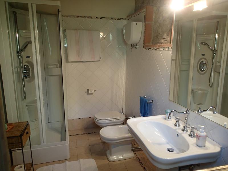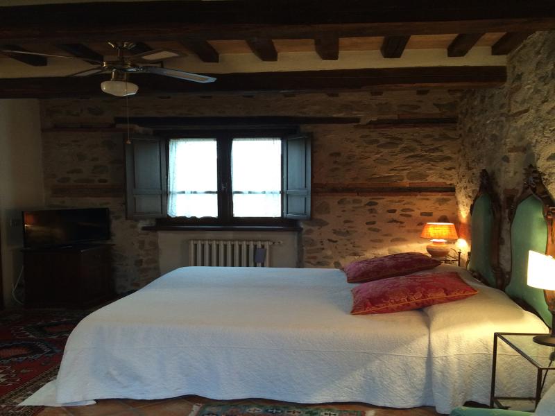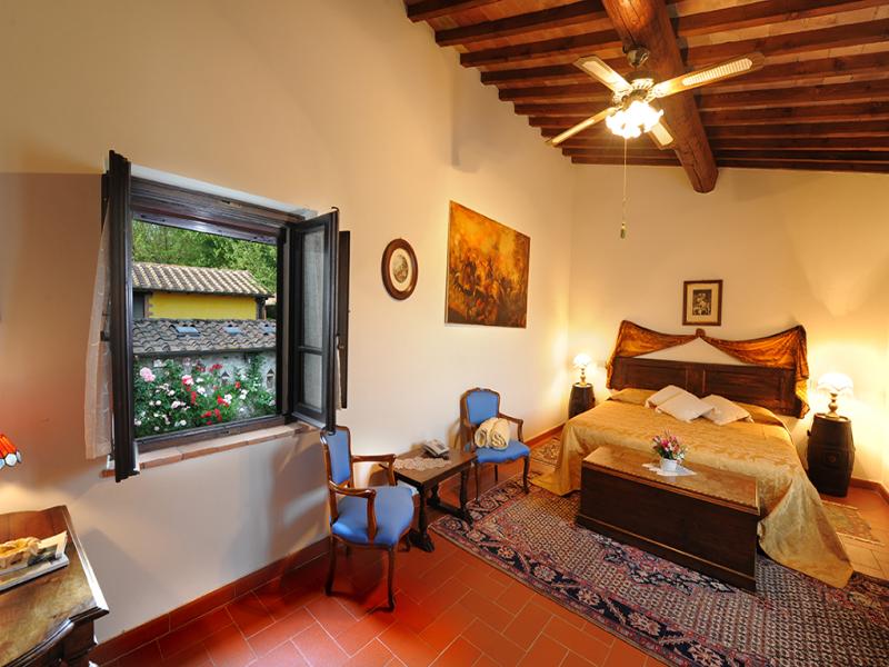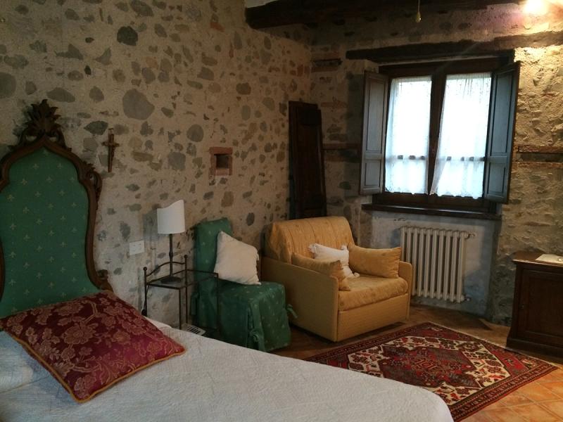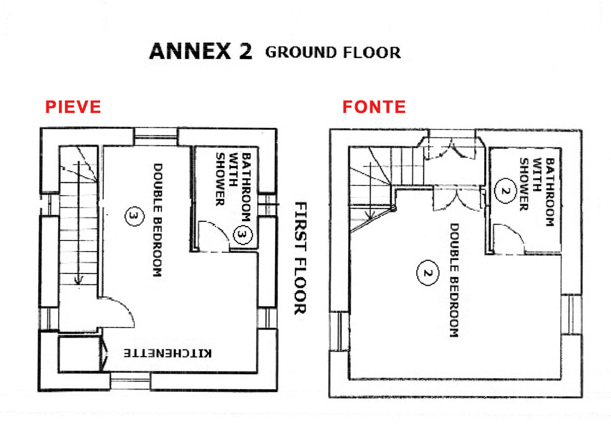 This was once a small church transformed over the years into a former squeegee where it was left to dry tobacco we created after a long and arduous restoration, two delightful suites; named Pieve and Fonte. On the ground floor we have the suite FONTE where there is a double bedroom with en suite shower room that can accommodate 2 or 3 people. From this floor, through a terracotta stairs leads to the upper floor where there is suite PIEVE a master bedroom with en suite bathroom with shower. The room has a closet in which there is a small kitchen with refrigerator. The two rooms are completely separate despite being one above the other.